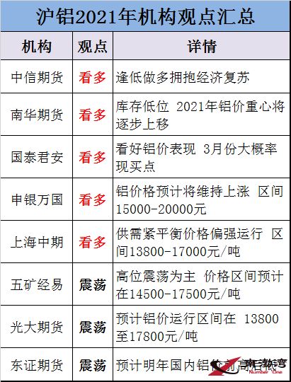 【金屬鋁】2021年滬鋁會怎么走?各大機(jī)構(gòu)看法出現(xiàn)明顯分歧